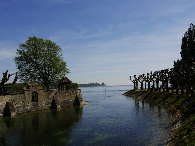 In April, I made a little trip to Konstanz. At first, I planned to visit the Bodensee on the Easter weekend, but since I felt dizzy after a migraine attack, I had to skip that and so, I was happy to take the train a month later on a sunny Saturday. After arriving in Konstanz, it just took a short ten minute walk to already stay at the bank of the Bodensee, where many people enjoyed the sun either by sitting close to the water or by having an ice cream. Since it wasn't crowded at the Imperia Statue at that time, I decided to go there first, before doing a relaxed walk around the banks of the lake. The Imperia stands on a pedestal that rotates around its axis and shows a woman holding two men on her hands. The statue refers to a short story by Balzac, "La Belle Impéria", which is a satire of the Catholic clergy's morals, where Imperia seduces cardinals and princes at the Council of Konstanz and has power over them all.
