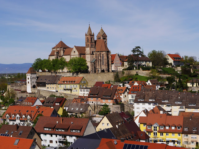 In the beginning of April, I finally managed to find time to visit Breisach. So far, I just stayed in Breisach once for a short time, but just at the train station to wait for the bus to Colmar. Unfortunately, I also missed the chance to visit the Breisach wine festival, which is supposed to be one of the best wine festivals of the region. When I arrived, I started a little walk up to the Eckartsberg, a small mountain of volcanic origin, in the south of the city. Amidst the vineyards, I had such a breathtaking view of the city with the Romanesque-Gothic St. Stephen's Cathedral, which is the landmark of Breisach, the Rhine river and the beautiful coloured houses in the city centre. Also while walking through the city, I realised, what I missed for so long. Even if Breisach isn't a big city, it was just amazing to explore every alley with many cute cafés and my absolute highlight was the ice cream at the "Eis Pavillon Incontro", followed by a promenade at the banks of the Rhine.