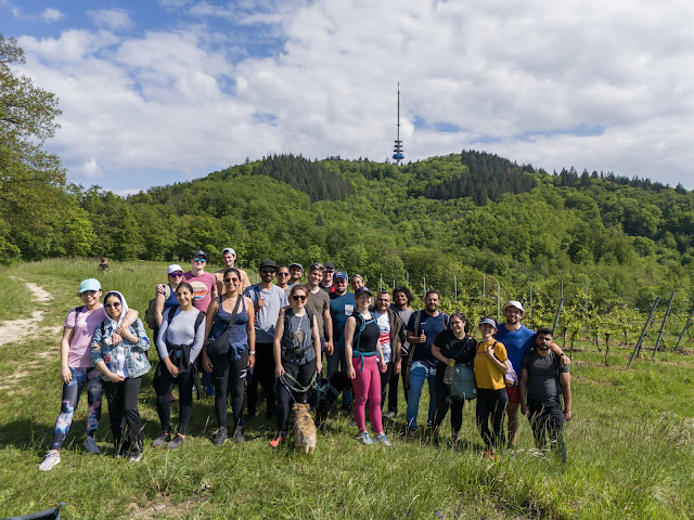 The spring season was full of amazing hikes and activities. One of the activities was a barbecue at the Kybfelsen in the close surroundings of Freiburg. At the beginning, it was planned as a hike and when we realised, we could also have an area to have a barbecue, even more people wanted to join and so, we were almost 30 Expats and one dog on tour. After a long and steep ascent to the Kybfelsen, we had such a brilliant view of Freiburg, the surrounding valleys and even the snowy Alps in the background and we really deserved our lunch break now, so we started the barbecue with delicious food and another great views, before returning to Littenweiler, where we started the hike.